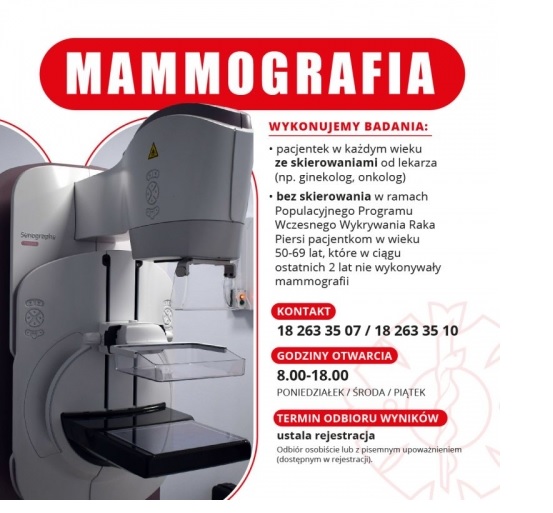 Zakupiony mammograf będzie wykorzystywany do wykonywania badań pacjentek w każdym wieku ze skierowaniami od lekarza, bez skierowania w ramach Populacyjnego Programu Wczesnego Wykrywania Raka Piersi pacjentkom w wieku 50-69 lat, które w ciągu ostatnich dwóch lat nie wykonywały mammografii.