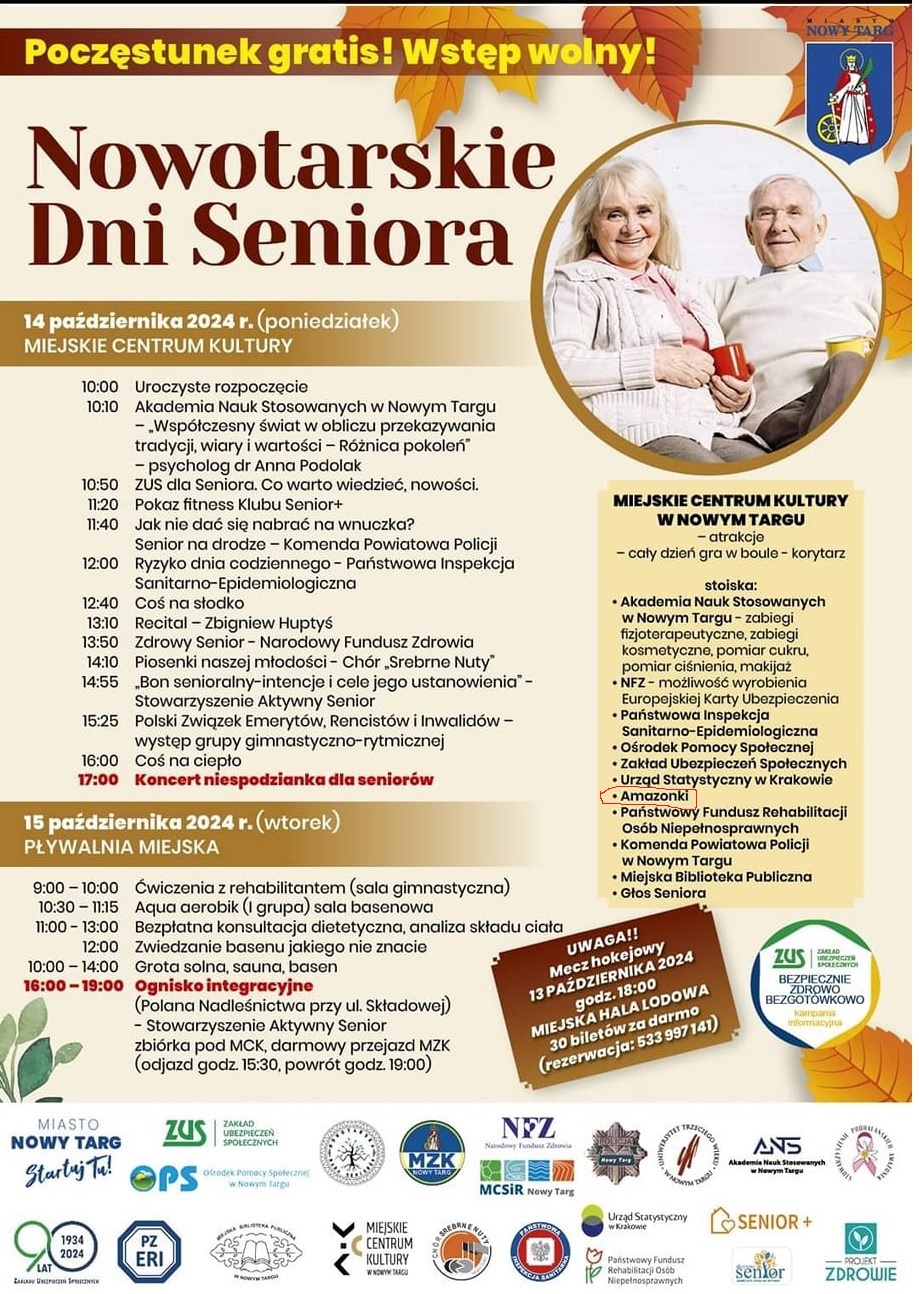 Dni Seniora Urząd miasta Nowy Targ zaprasza na Nowotarskie Dni Seniora 14 i 15 października 2024r. Przedstawicielki naszego Stowarzyszenia będą czynnie uczestniczyły udzielając porad, prowadząc stoisko medyczne Poprzedni artykuł Następny artykuł